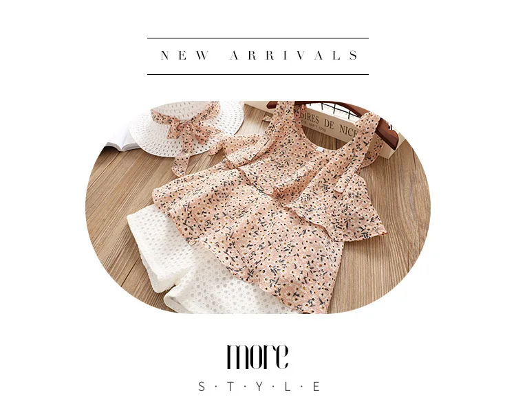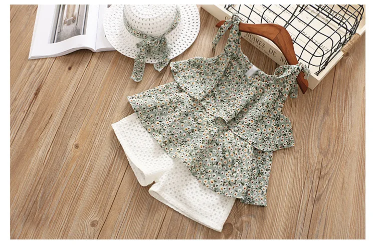 Комплект с шортами, костюм-двойка для девочек, детская одежда для малышей, лето 2021, жилет без рукавов для девочек, шорты, детские комплекты из двух предметов с цветочным принтом